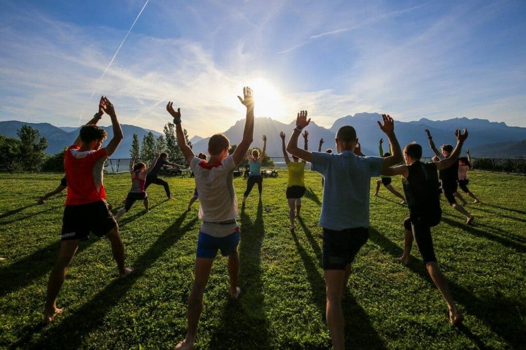 Every morning started with yoga at 7:00 a.m. with Ida Nilsson, fresh off of her win at Transvulcania, while facing the sunrise over the mountains around Lake Annecy. While we all know the yoga benefits, I find it hard to find the time in my busy life to actually do yoga, but every time I take the time for it, it feels SO GOOD. Having it scheduled daily made me realize how much it helps to start the day relaxed and loosened up, when you have a crazy-busy schedule looming. (Now if I can only keep up this routine…)