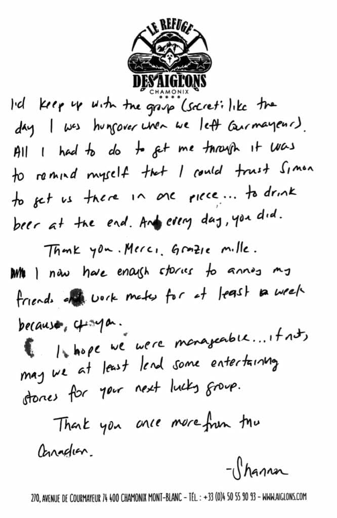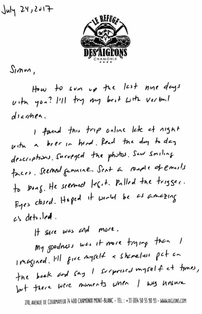 By the way, about those stains on the paper: they’re genuine olive oil from lunch in Chamonix.