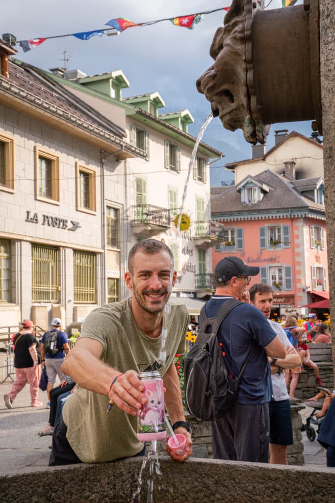 Sourced from the glacial melt of the Mont Blanc massif, alpine springs are located throughout the valley and serve as a crucial water source for hikers, runners and livestock. The decorative, often elaborate granite cisterns with brass spouts in the likeness of lions and dragons were mostly installed in the 19th century, though some date back as far as 1480. These springs serve as the drinking water for villages and homes, and during a 172K run around Mont Blanc, they also provide a much-needed chance to cool down.