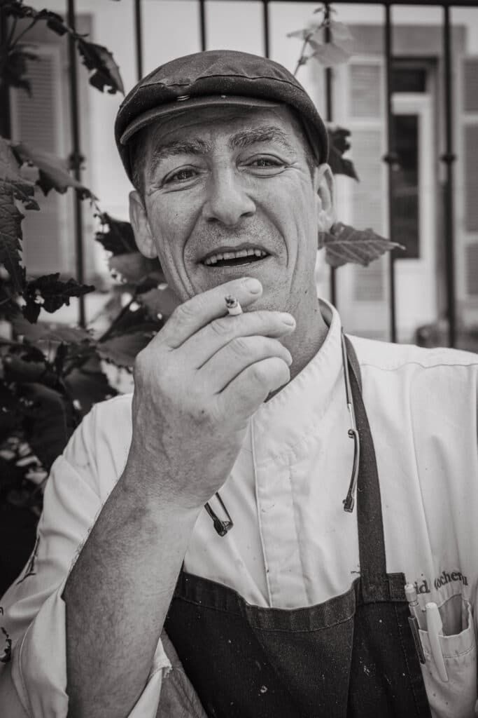 Just a few meters from the start and finish arch of UTMB, at the back door of a restaurant in the main square, I noticed the same chef several times. He was escaping his culinary duties for a cigarette break. On one passing, I made eye contact and we nodded to each other and I thought about stopping. After a few more steps, I convinced myself to turn around and approach him. I wasn’t sure how he would react to me asking him if I could take his portrait, but after a few seconds of stumbling, I communicated that I had seen him taking his cigarette breaks several times and wanted to take his photo. He was a little taken aback: “Moi?” he asked. Very humbly, and a little bashfully, he agreed. He’s how I picture the prototypical Frenchman.