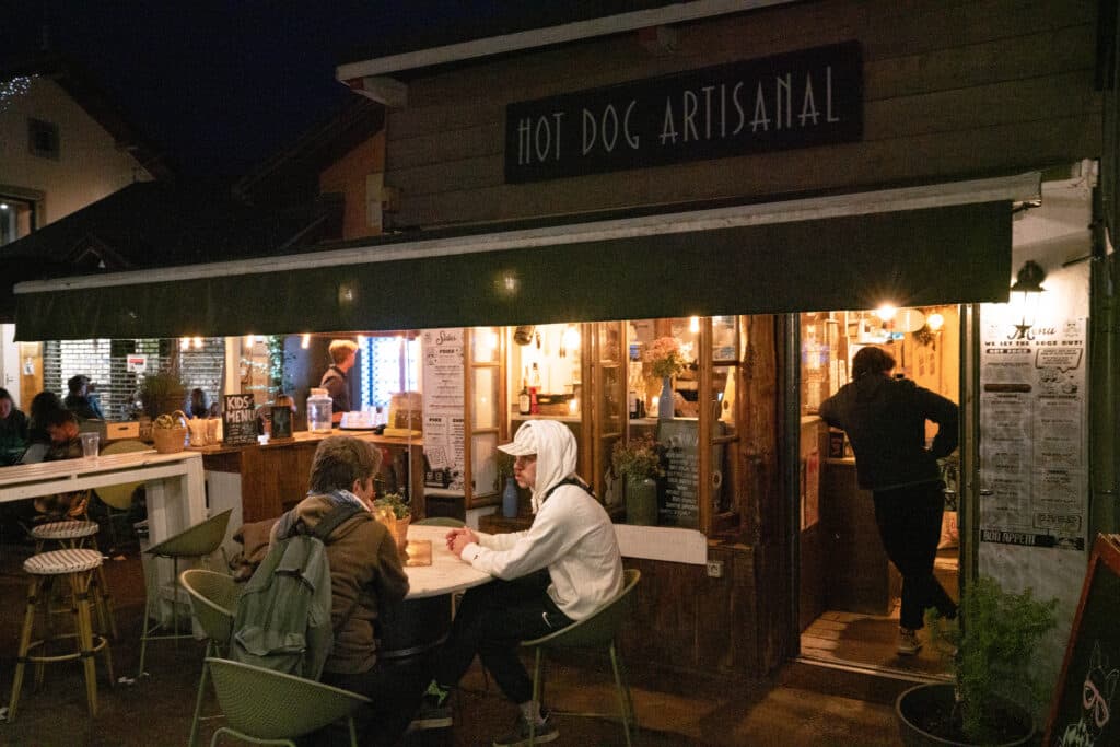 The narrow pedestrian street named Rue des Moulins, once home to mills powered by the adjacent Arve river, is abundant with craft coffee, gourmet pizza restaurants, and eclectic drinking establishments. Hands down, the best known business along this picturesque, narrow road is Cool Cats, a tiny restaurant with on-street seating which sells hot dogs, both traditional and veggie, with elaborate fixings. I opted for the vegetarian overflowing with toppings: fried onions, avocado, chives and even a sunny side up egg! There were so many toppings that I forgot there was even a dog under all that goodness.