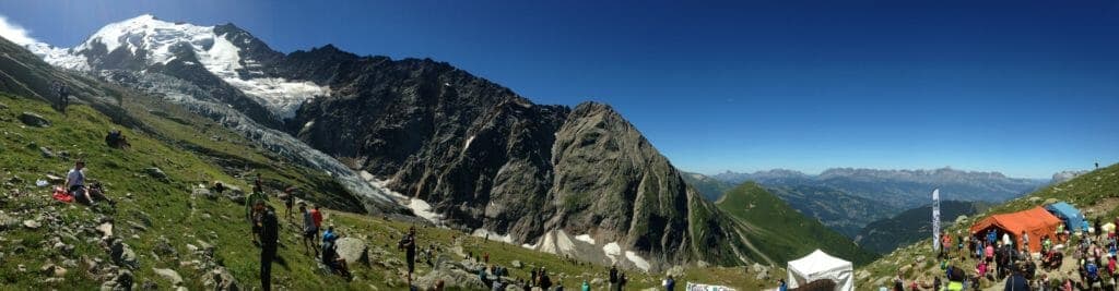 The last 5 km are the most magnificent, with views on the Bionnassay glacier, the Bionnassay needle and the Dôme du Goûter. After crossing the finish line, we were rewarded by the usual food and drink, including local cheese and — luckily, not exclusively — rosé wine!
