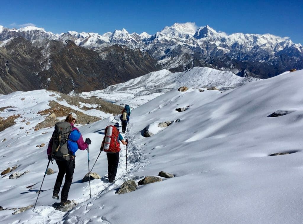 The start of winter found guide Heather Ohly trekking with husband Shane and two friends in northeast Nepal. Here’s the group descending from Lumbha Sambha Pass at an elevation of 5159m. And when she’s not in Nepal? Heather’s a PhD researcher in nutrition.