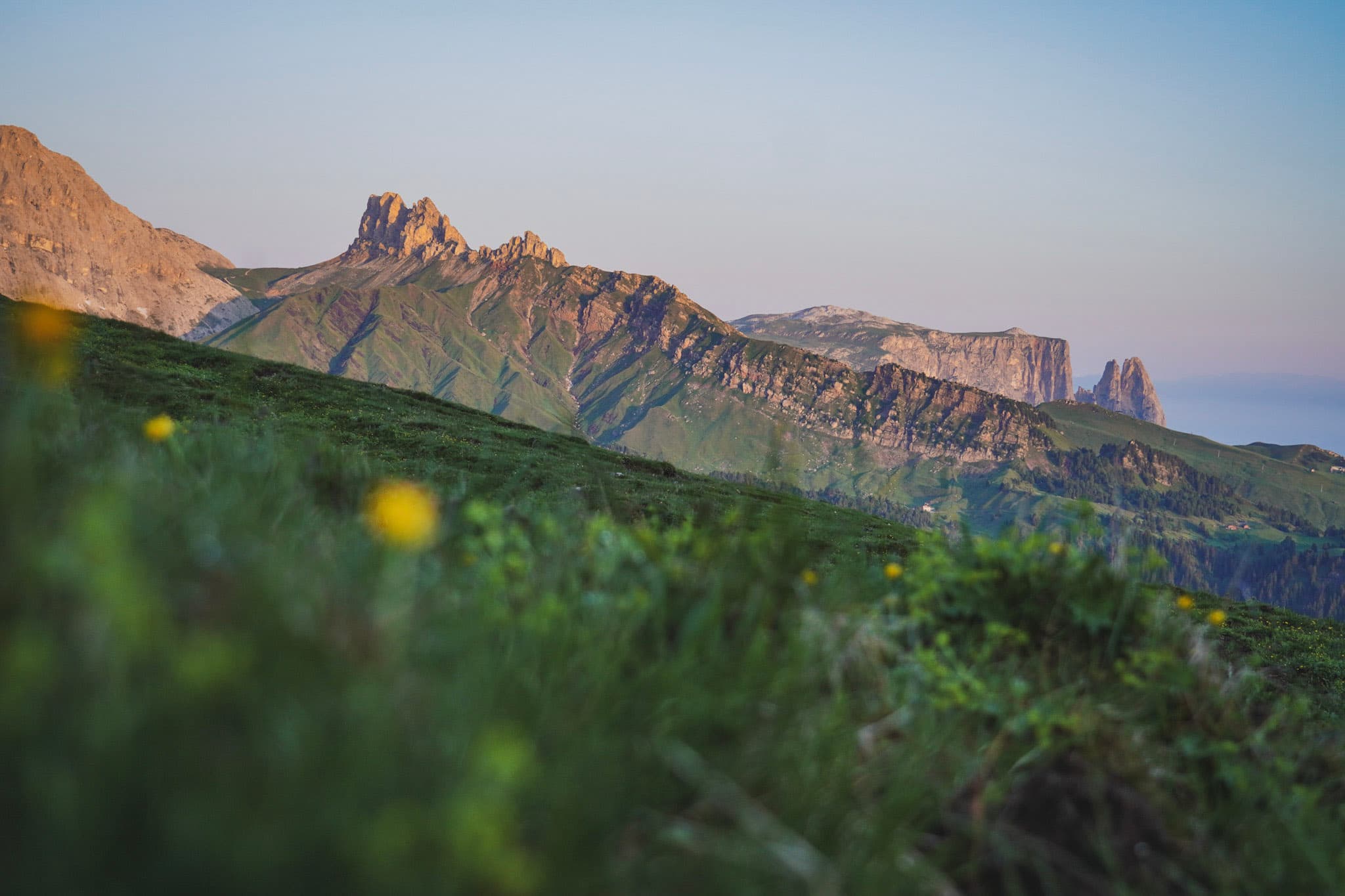 Start with a cable car to the Alpe di Siusi plateau, before climbing steeply up to Rifugio Bolzano. You’ll cross a grassy plateau, before dropping into a deep valley with towering cliffs. A smooth, undulating trail leads you to the Plattkofel Hut where you’ll spend the night. No bag drop is available today.