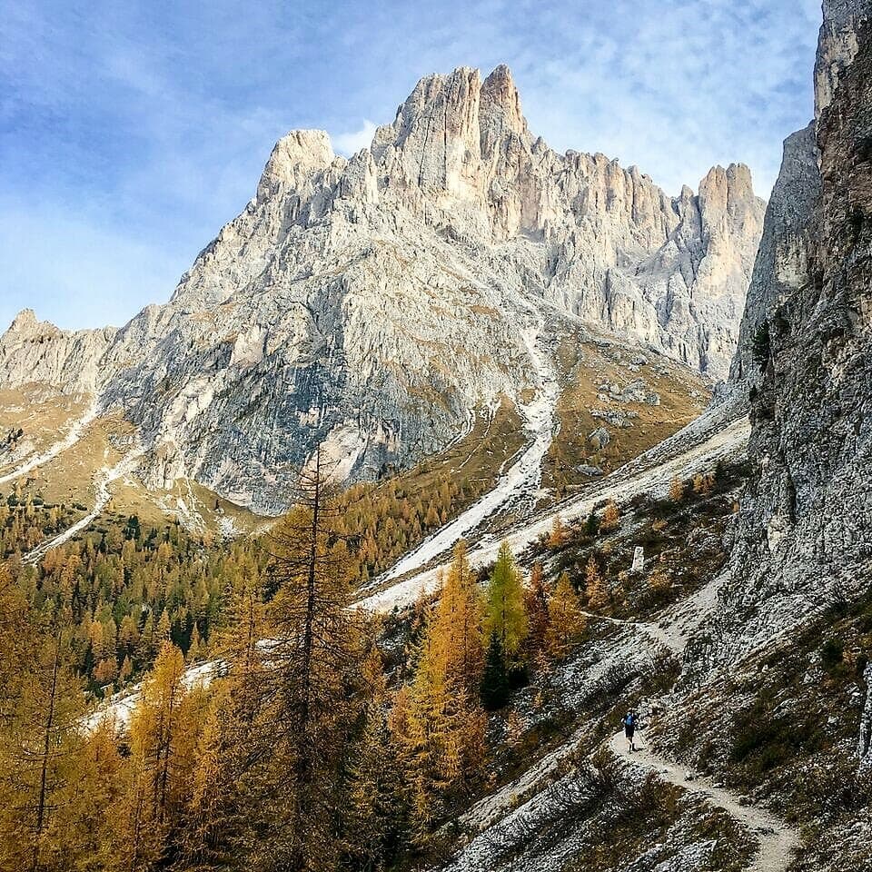We only lamented the fact the alpine refugios, or hütte in German, we passed from time to time were already closed for the season. Often improbably placed, perched on a cliff edge or tucked into a narrow mountain pass, these establishments offer welcome sustenance to weary hikers or runners. As I chomped on an energy bar pulled from my vest, I marvelled at the wonderful outlook from the Plattkofel hütte and consoled myself that next June I’d be sitting here with my group, drinking freshly brewed cappuccinos served with homemade tart!