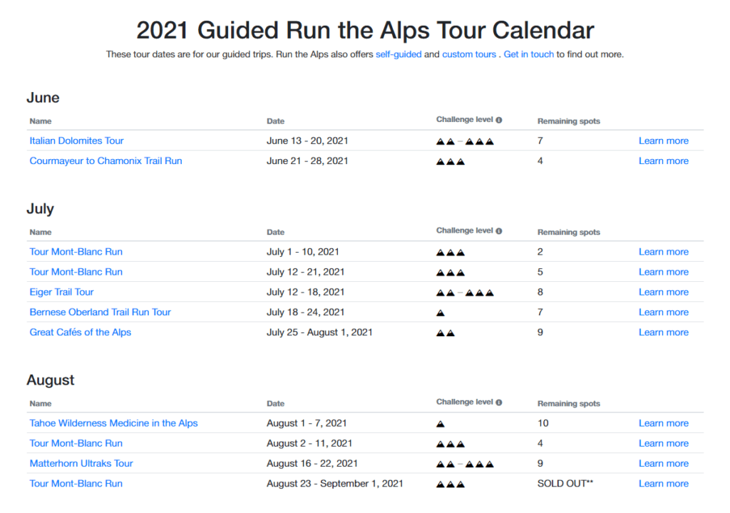 Second, for those of you who are guests on a Run the Alps trip, we’ve added considerable booking flexibility, specifically: