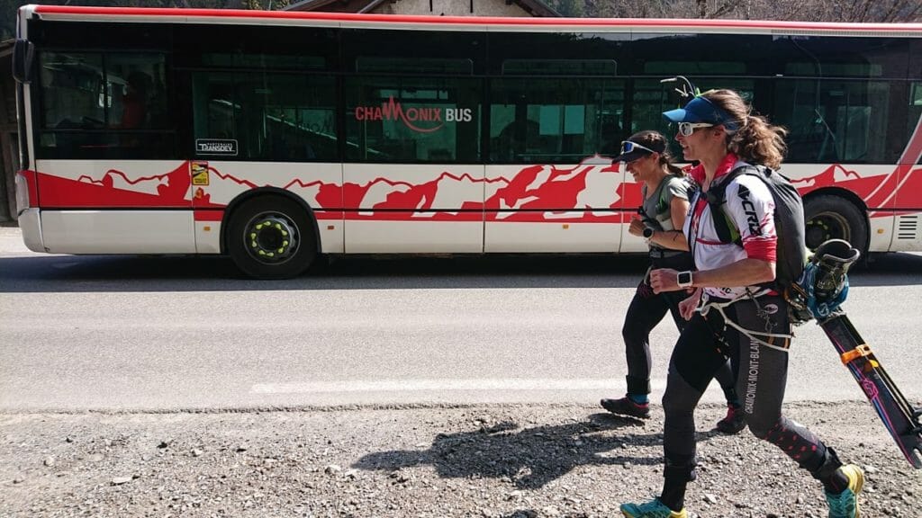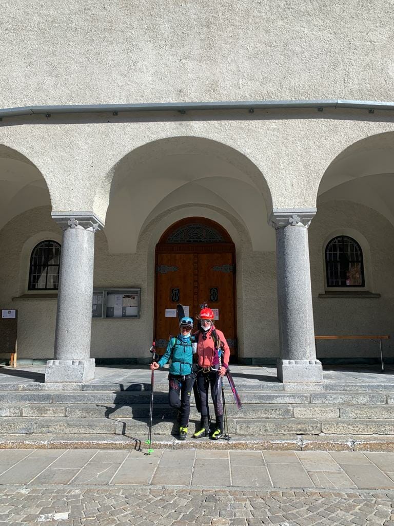At 2 pm on Saturday, two of Chamonix, France’s strongest mountain athletes left the steps of the St Michel Church in Place du Triangle de l’Amitié, fully attired in ski mountaineer gear. And exactly 26 hours and 21 minutes later, they were on the steps of the parish church of Saint Mauritius in Zermatt, Switzerland, having skied at least 106.4 km and 8100 meters, including climbing and descending over eight passes.
