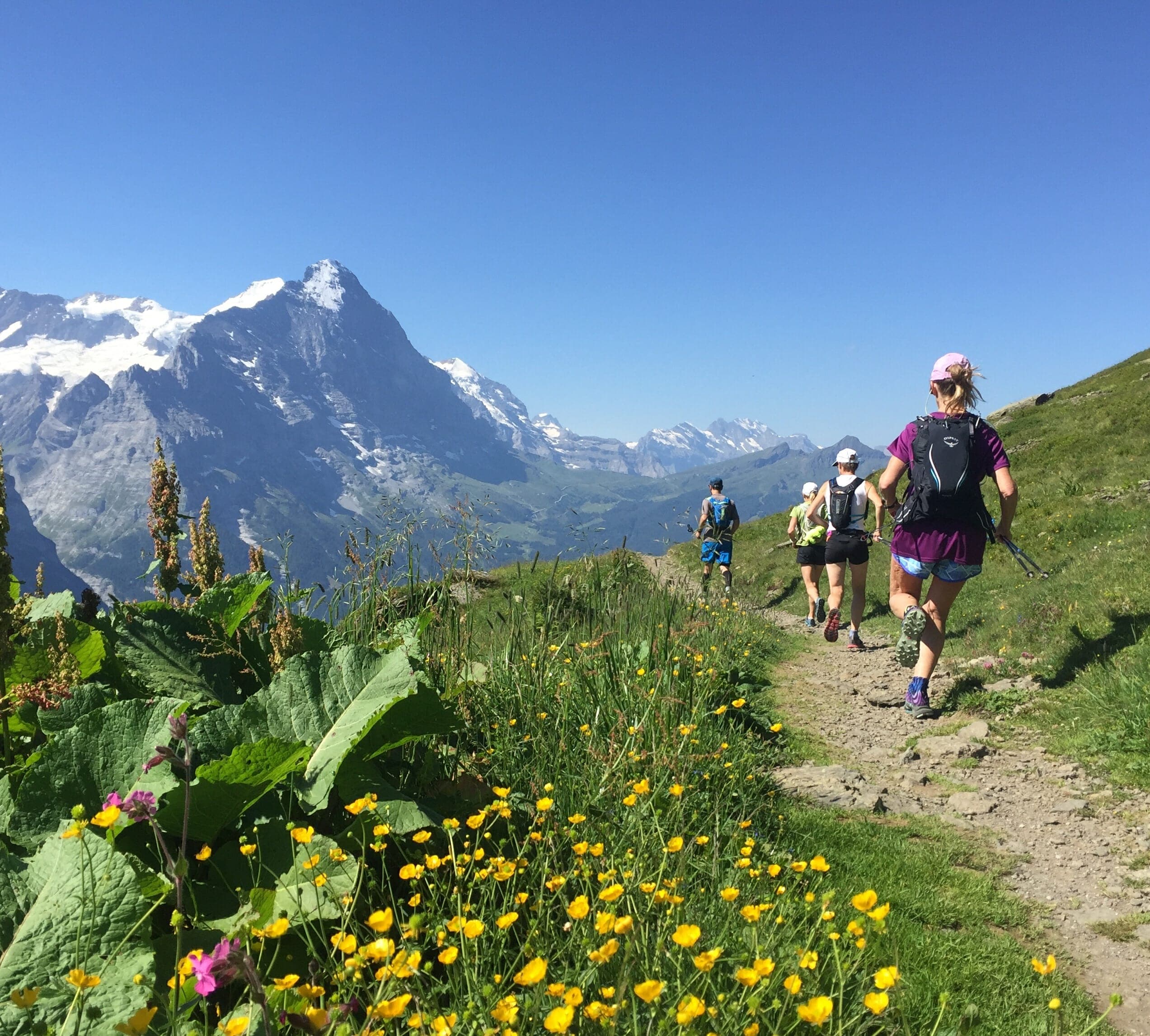 Our group of six runners and two guides explored some classic Swiss trails around Wengen, Lauterbrunnen, Gimmelwald, Murren, and Grindelwald. New trails and views each day!
