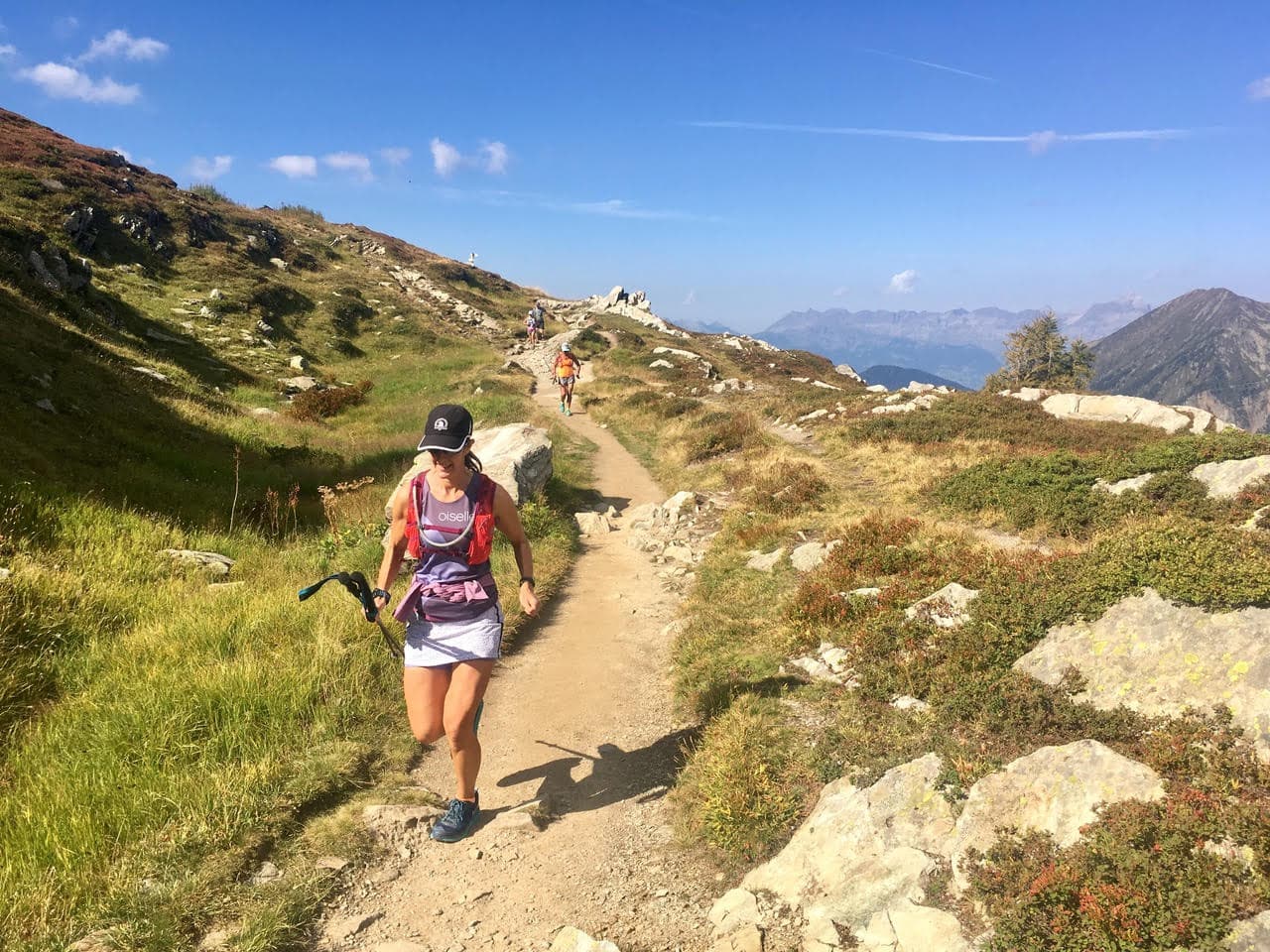 Running down from the Col de Coux, the Dents du Midi visible in the distance. (Photo: Emily Geldard)