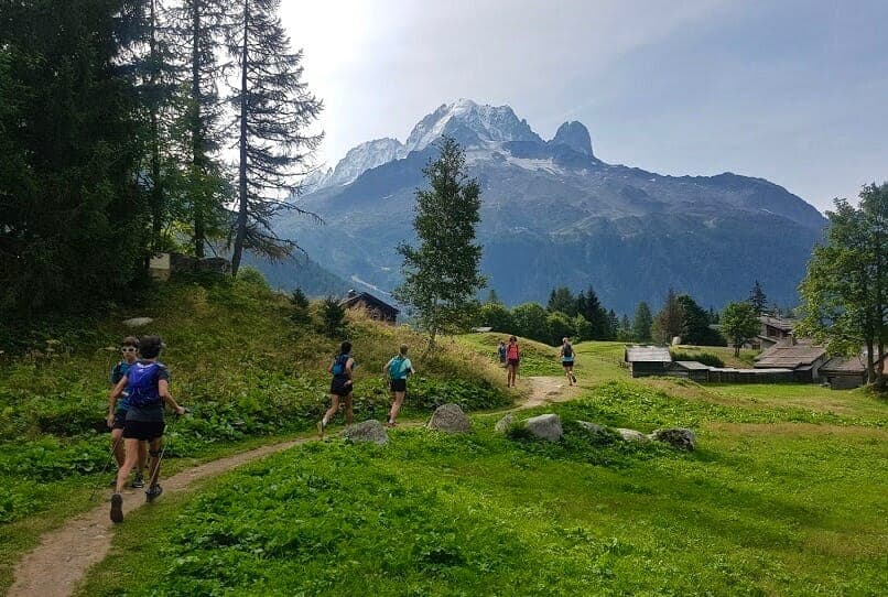 Trail running on a Run the Alps trip with the Glacier du Tour in the background (Photo: Run the Alps).