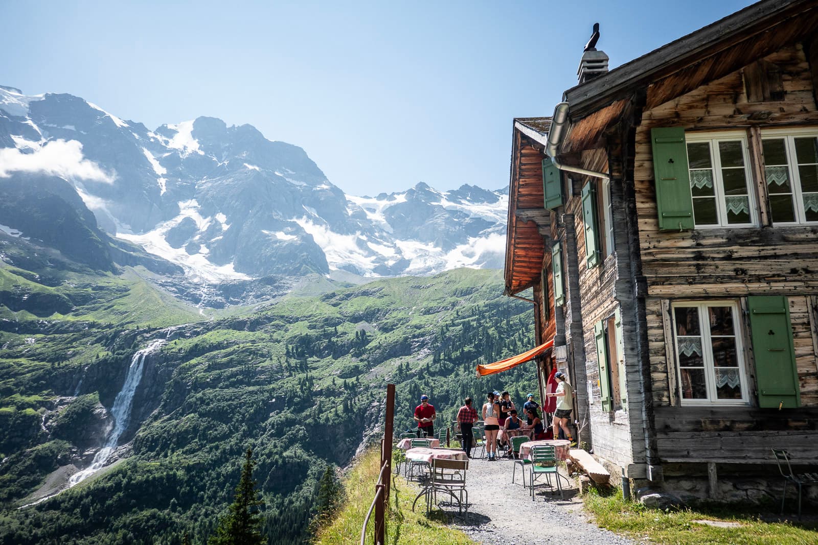 Following the breathtaking balcony path above Obersteinberg, our steep descent down to the Sefinental valley felt hard going. But, just as it was starting to feel a little prolonged, the sounds of the river came closer and soon we were able to cool our feet at the edges before our climb up to Gimmelwald for drinks and nachos.