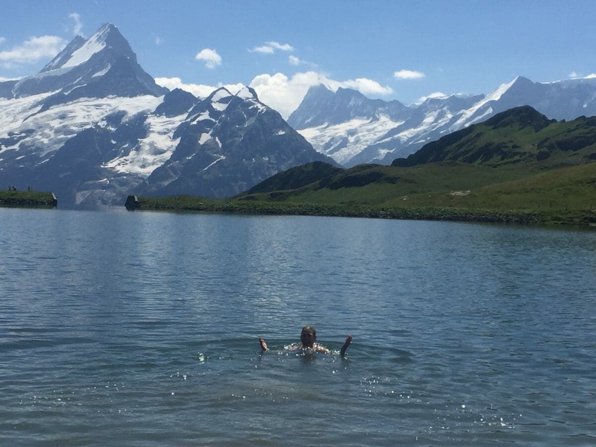 Dorcas taking a quick refreshing dip in Lake Bachsee.