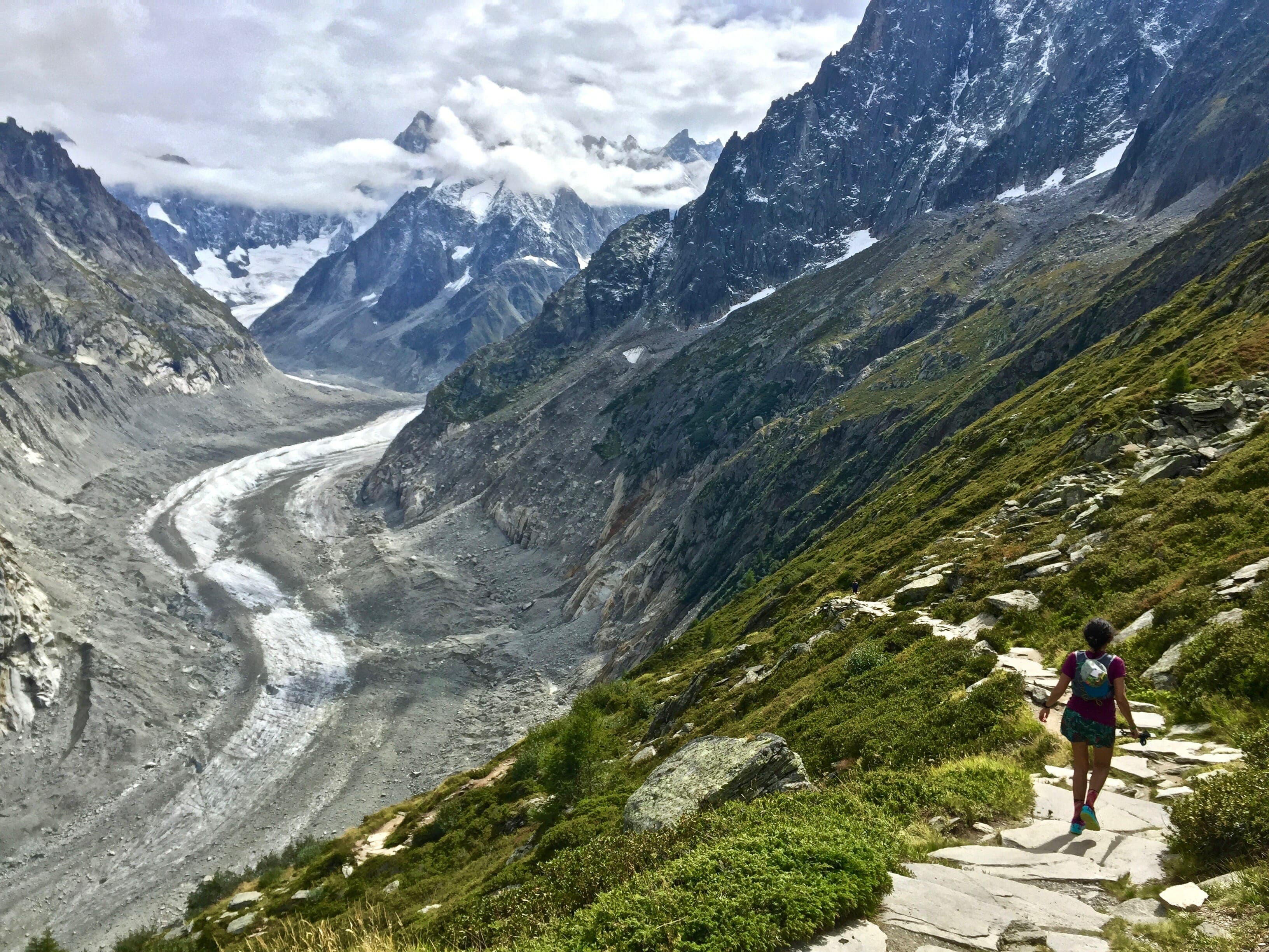 Descending from Le Signal down to Montenvers, with the Mer de Glace glacier below. (Photo: Emily Geldard)