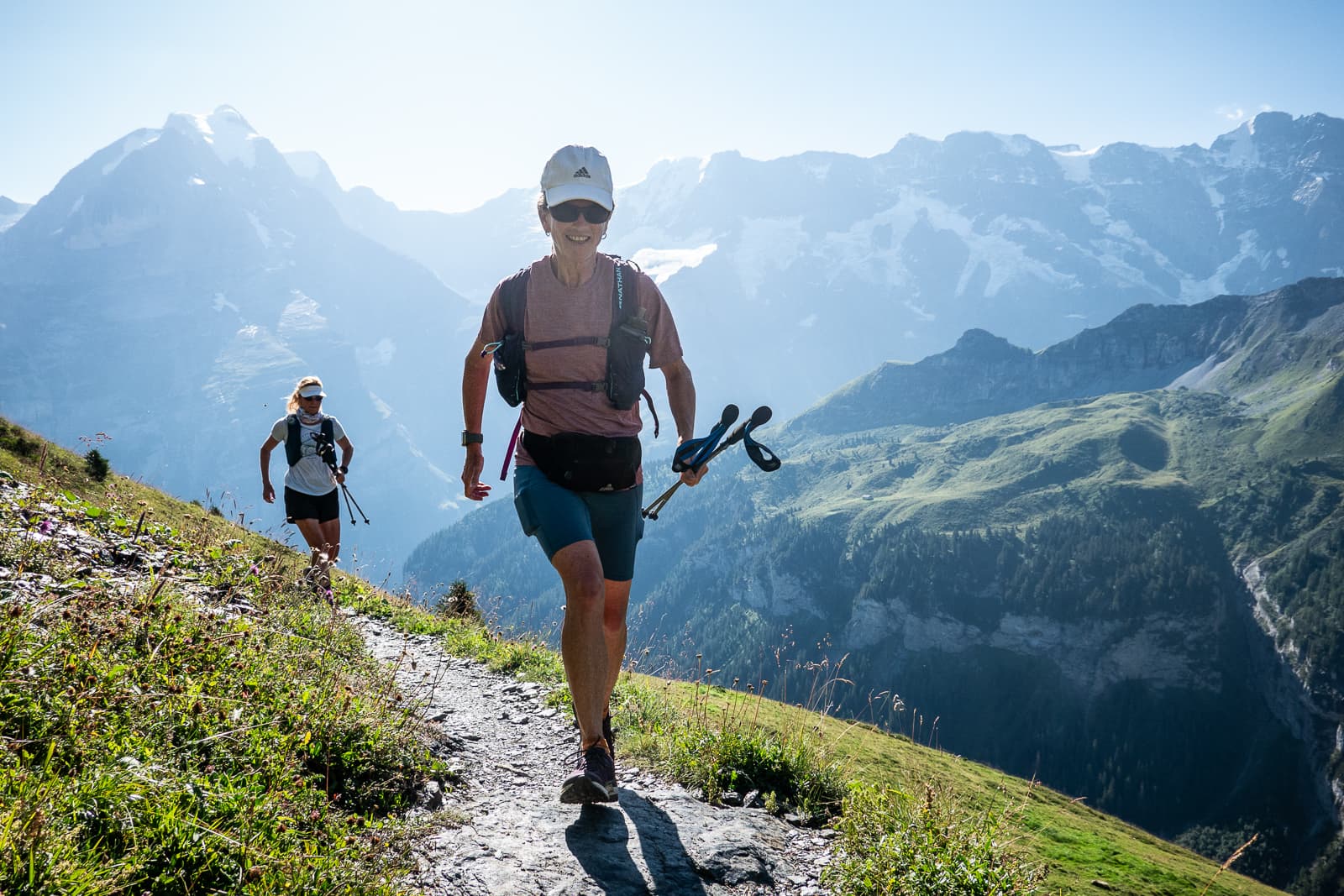 To name a few: Being up on Tanzbödeli (the dance floor) on a perfect morning with panoramic views of Lauterbrunnen. Running up to Sefinafurgga with Run the Alps Content Producer, Kim, who took some great photos and infused us with her energy. Bagging the summit of Bunderspitz and being inspired by elderly locals hiking all the way up there.