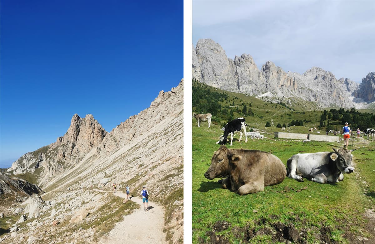 I think the journey through Sassolungo was a great moment. We’d just stopped for a great coffee at Rifugio Toni Demetz, and we were descending through a moonscape between towering limestone peaks. The running was good, the company was excellent, and the views were outstanding. It all added up to a great couple of hours.