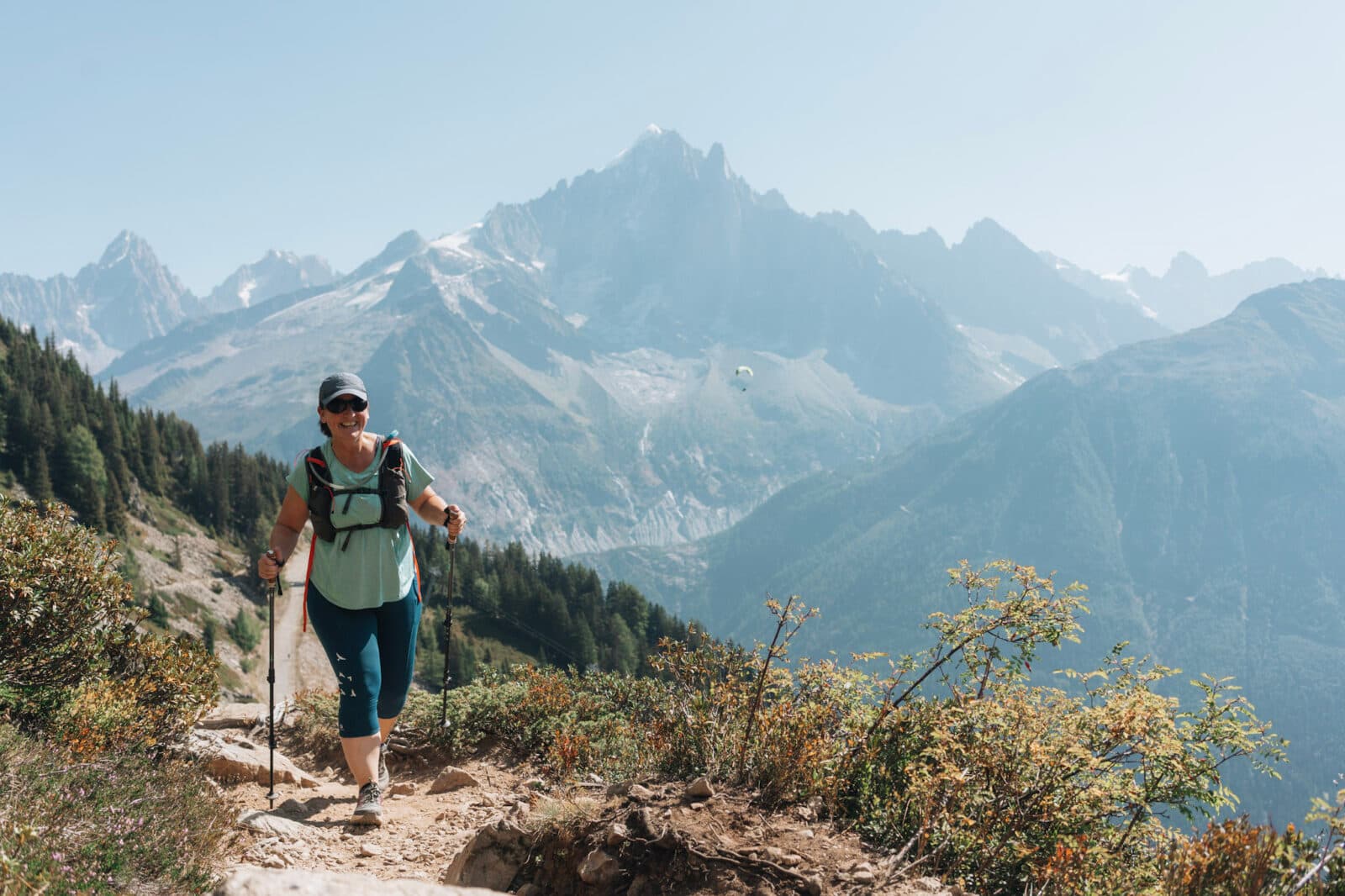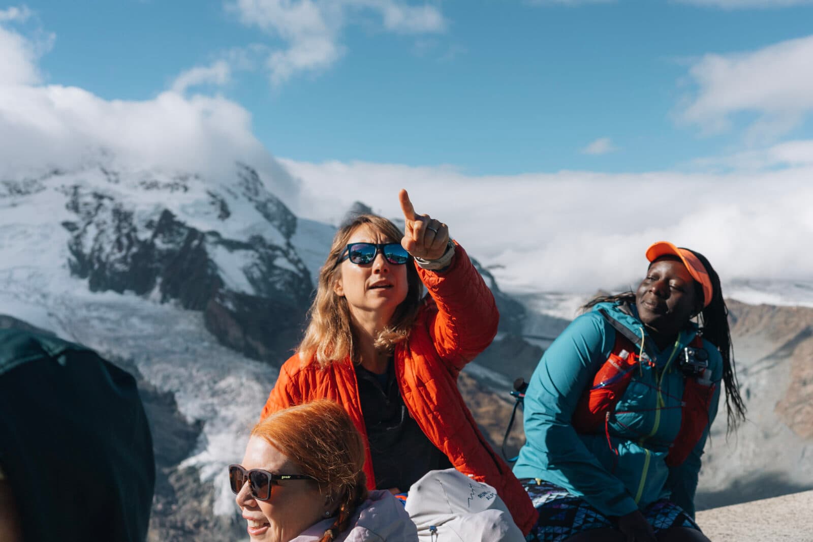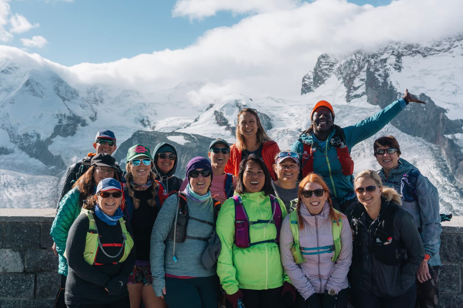 With Emily Geldard leading the tour alongside assistant guide Mike Murray, and guide and photographer Sam Hill, the group covered three countries and spent seven days running fabulous trails. We took in the famous “Grand Balcons” of Chamonix and the Aiguillette des Posettes at the top of the Chamonix valley at the Swiss border. We then traveled over the glaciers of the Mont Blanc Massif via cable car to spend two days in the quaint town of Courmayeur, Italy. From here, we traveled to the Grand St-Bernard Pass where we spent a night on the Swiss-Italian border, and ran down into Switzerland. We spent the last two days of the tour in Zermatt, with trips up the mountains to admire the Matterhorn and Monte Rosa. The weather was fair overall, apart from a little rain in Courmayeur, although we enjoyed the cooler temperatures that came with it.