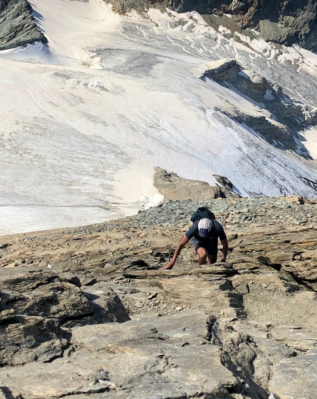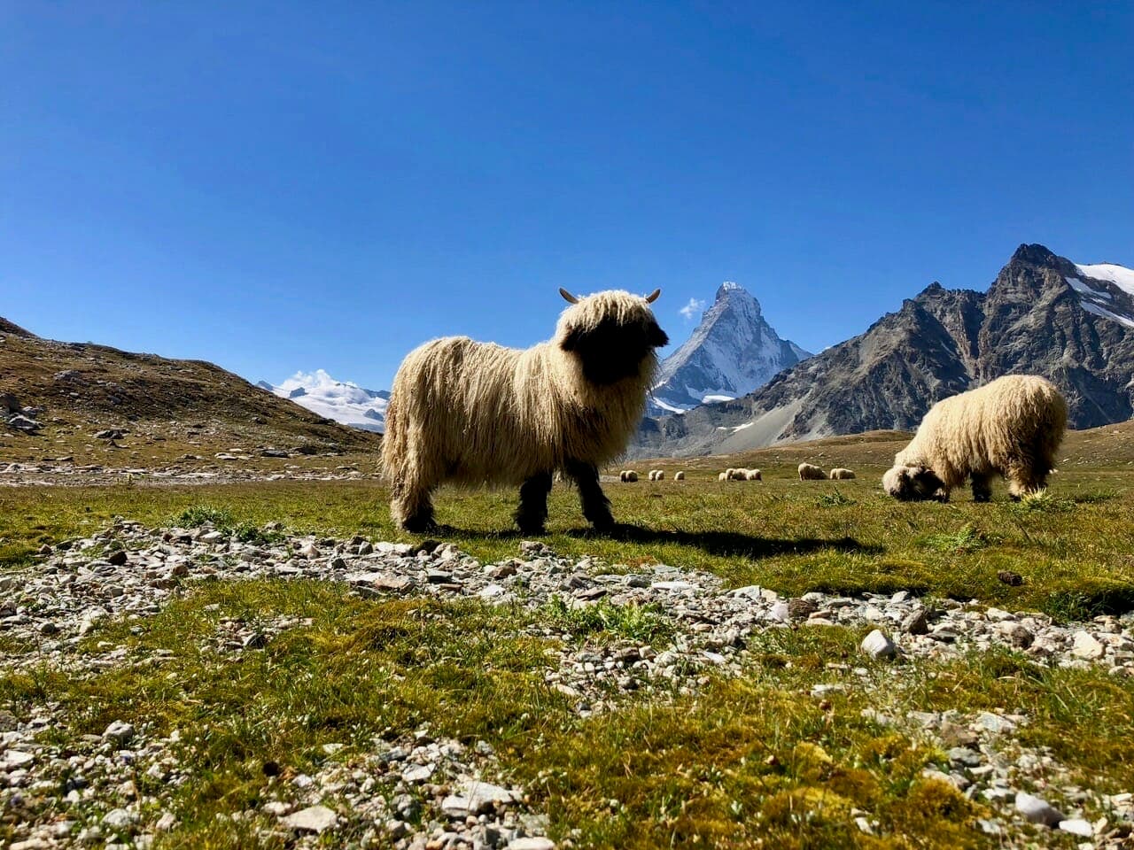 *Trail running up Zermatt’s 3,345-meter high Mettlehorn… for which we had to cross the Hohlichtgletcher, then scramble steeply to the summit. Along the way, some of the best iced tea in the Alps (thank you, Trift Hotel) and Valais black nosed sheep. (Note to pandas: you are not the cutest animals on the planet.)