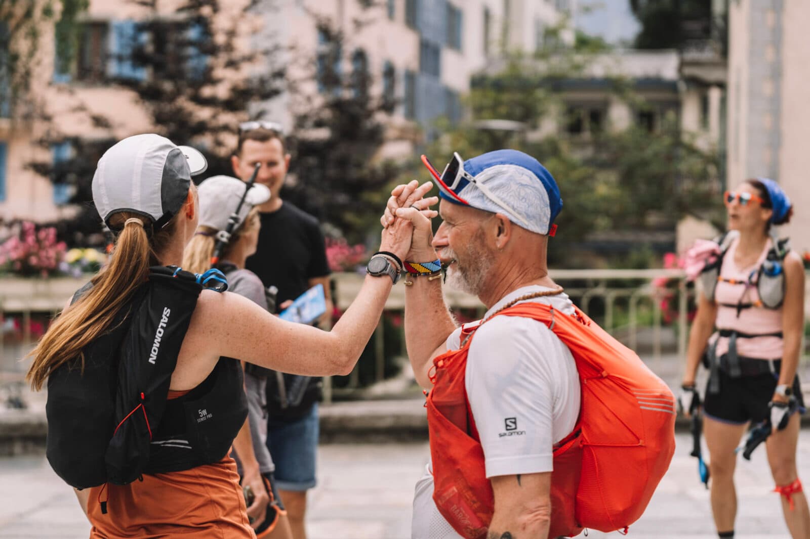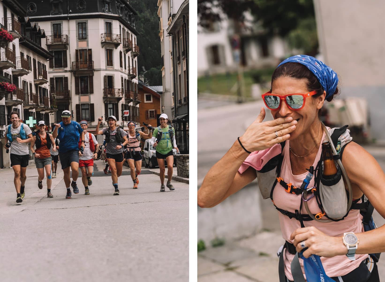 Running into Chamonix to finish at the church steps and celebrate. Time to swap out soft flasks for Big Mountain bottles. (Photo: Sam Hill)