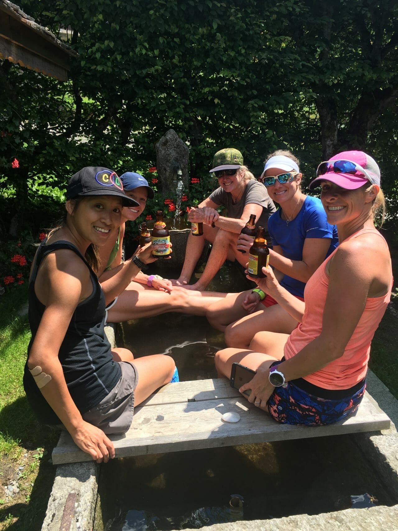 *Arriving at Gai Soleil in Les Contamines. David, the trail-running owner, served us beers in the water trough — so we could simultaneously chill our quads and our brains, too.