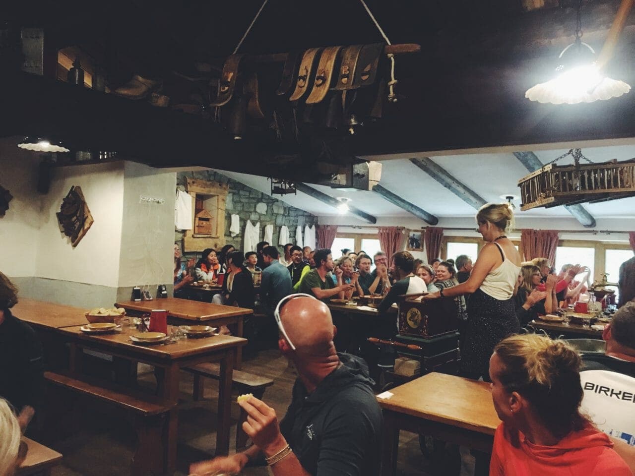*The hurdy-gurdy-playing caretaker at Les Mottets, getting us all to sing along to The Beatles. You haven’t lived until you’ve heard 100 people in a rustic mountain inn singing along to “Yellow Submarine.” You just had to be there.