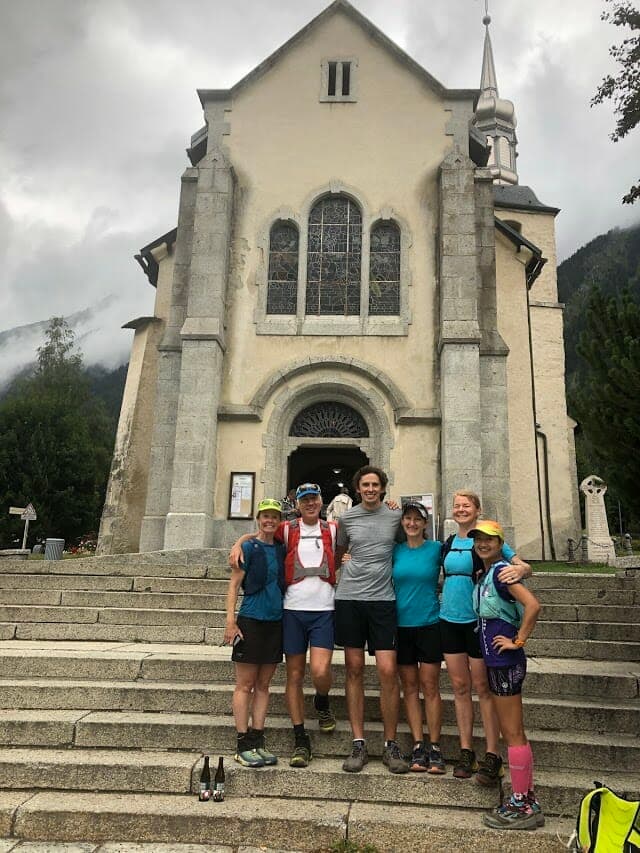 Posing for pre-tour photos on the steps of Chamonix, France’s church of St-Michel, we were set for our odyssey around the Mont Blanc massif. Following a shakeout run the day before on the stunning Balcon Sud, mind, body and soul (and running gear) were ready for the journey ahead. The group was made up of Heidi, Stella, Laura, Mike, Laura and Jenny, who had travelled from the US to come and run in this beautiful alpine landscape.