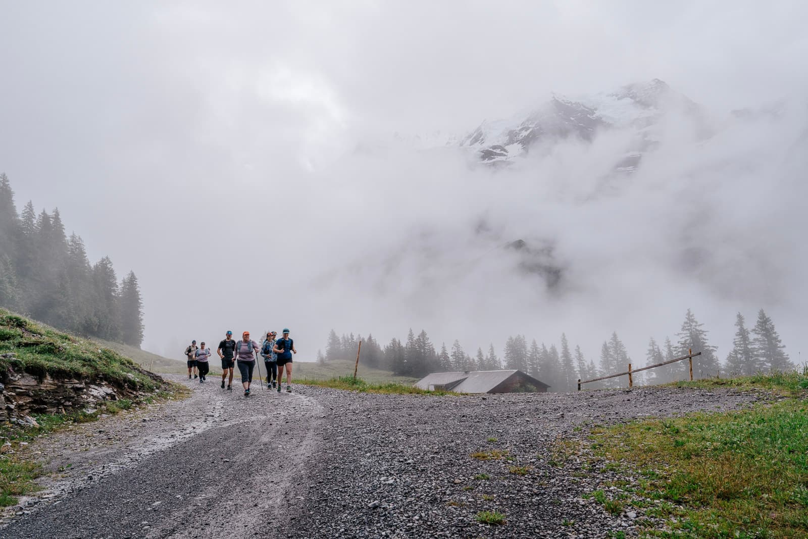 We’ll take the train down to the glacier-carved and steep-walled Lauterbrunnen valley, and then run alongside the river beneath 10 glacier-fed waterfalls to the quiet hamlet of Stechelberg. From here, we’ll fast hike up through forest into the beautiful Sefinental valley and then through alpine meadows up to Mürren.