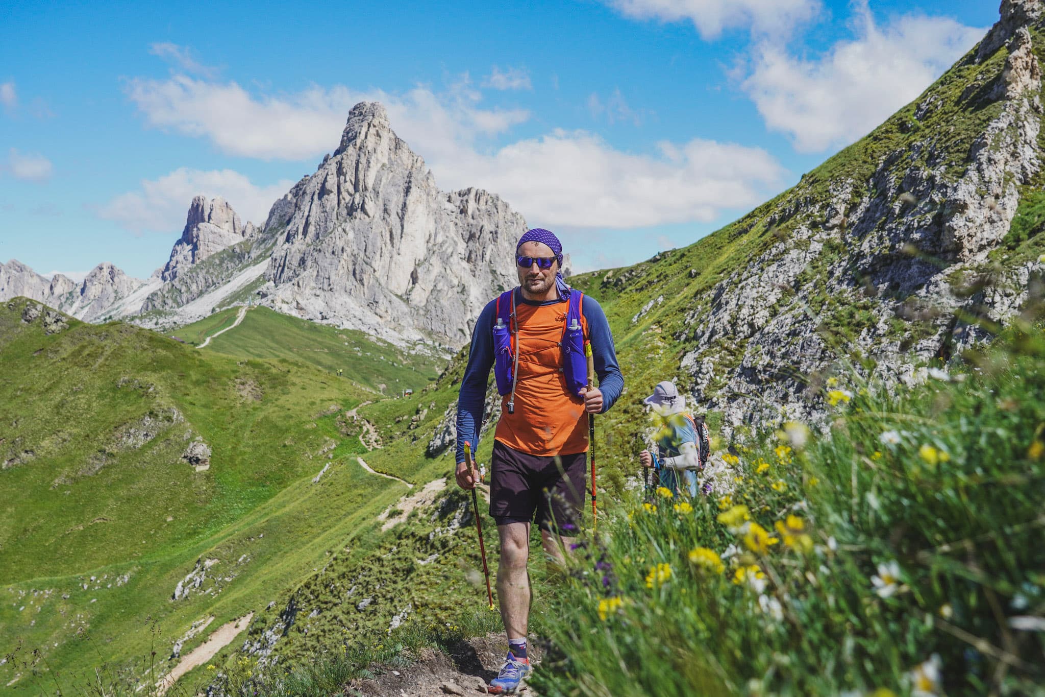 Today we run more technical trails below the cliffs of Setsas, with impressive views of the Marmolada, the highest peak in the Dolomites.