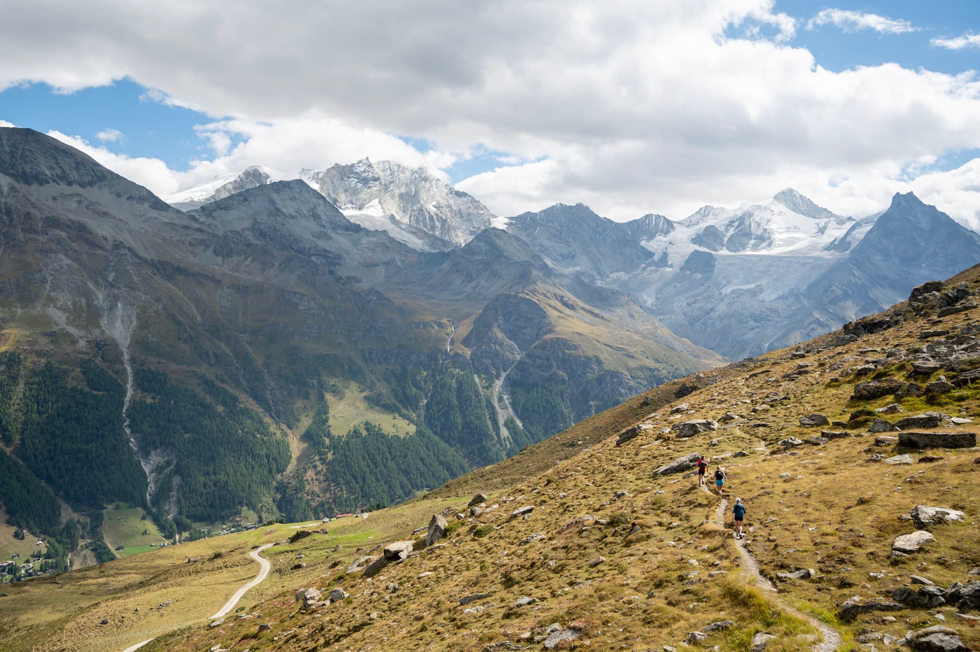 After three days in Zinal, we’ll take a private taxi to Zermatt in German-speaking Switzerland, via a stop at the historic spa town of Leukerbad, ringed by mountains. We’ll climb the improbable trail up to the Gemmi pass – taking part in one of the world’s unique trail events– the timed Gemmi challenge, if you like! After lunch at a mountaintop cafe, we’ll descend from the pass on foot or take the gondola down to Leukerbad.