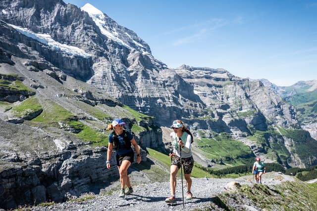 Run the Alps guide and a group heading towards Mürren. (Photo: Kim Strom)