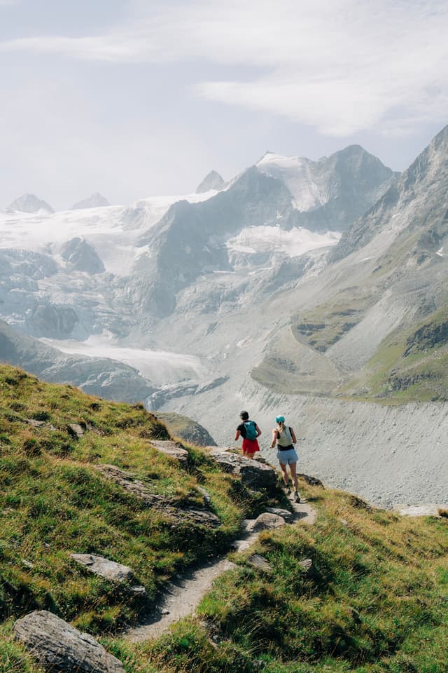 Get a taste of one of the most well-known trail races in the world, Sierre-Zinal, by taking in the second part of the race route, which has the best running and views. You’ll take a bus to the village of Chandolin, then run the high traverse back to Zinal, with the famous 4000m peaks surrounding you. A steep descent brings you down through forest to the famous finish line in Zinal.