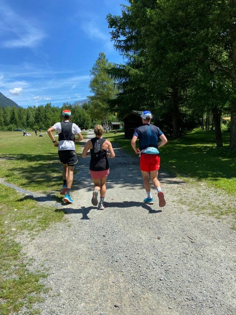 Once in the valley, it was easier for friends to join! Along with Chamonix resident and North Face athlete Meg Mackenzie, Mike ran up the valley to Le Tour, France. (Photo: Hillary Gerardi.)