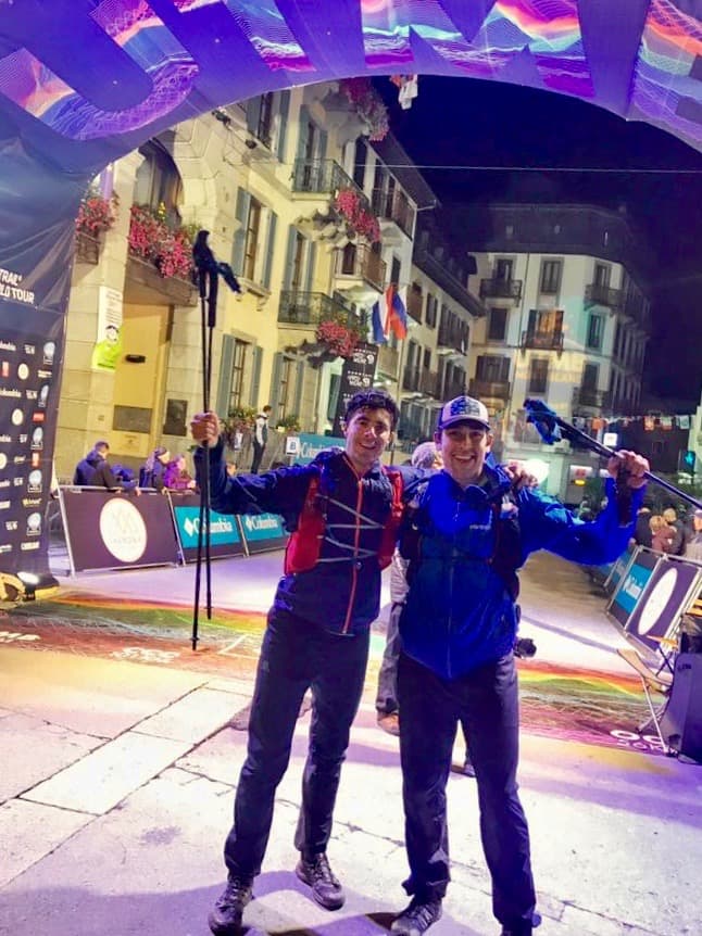 The next morning, we posted up at a bar by the UTMB finish line to keep an eye out for Doug on the home stretch. Husbands and wives rolled in, fathers and sons, entire families hand in hand. The finish of the 167-km long UTMB is an amazing spectacle, especially considering the 101km we had just finished was only a little more than half the race these competitors were now wrapping up. We pounded against the corral that lined the finish route in support. And then, in came Doug, rambling with a determination that took me back to our very first conversation in Cambridge that started over that simple Run the Alps laptop skin.
