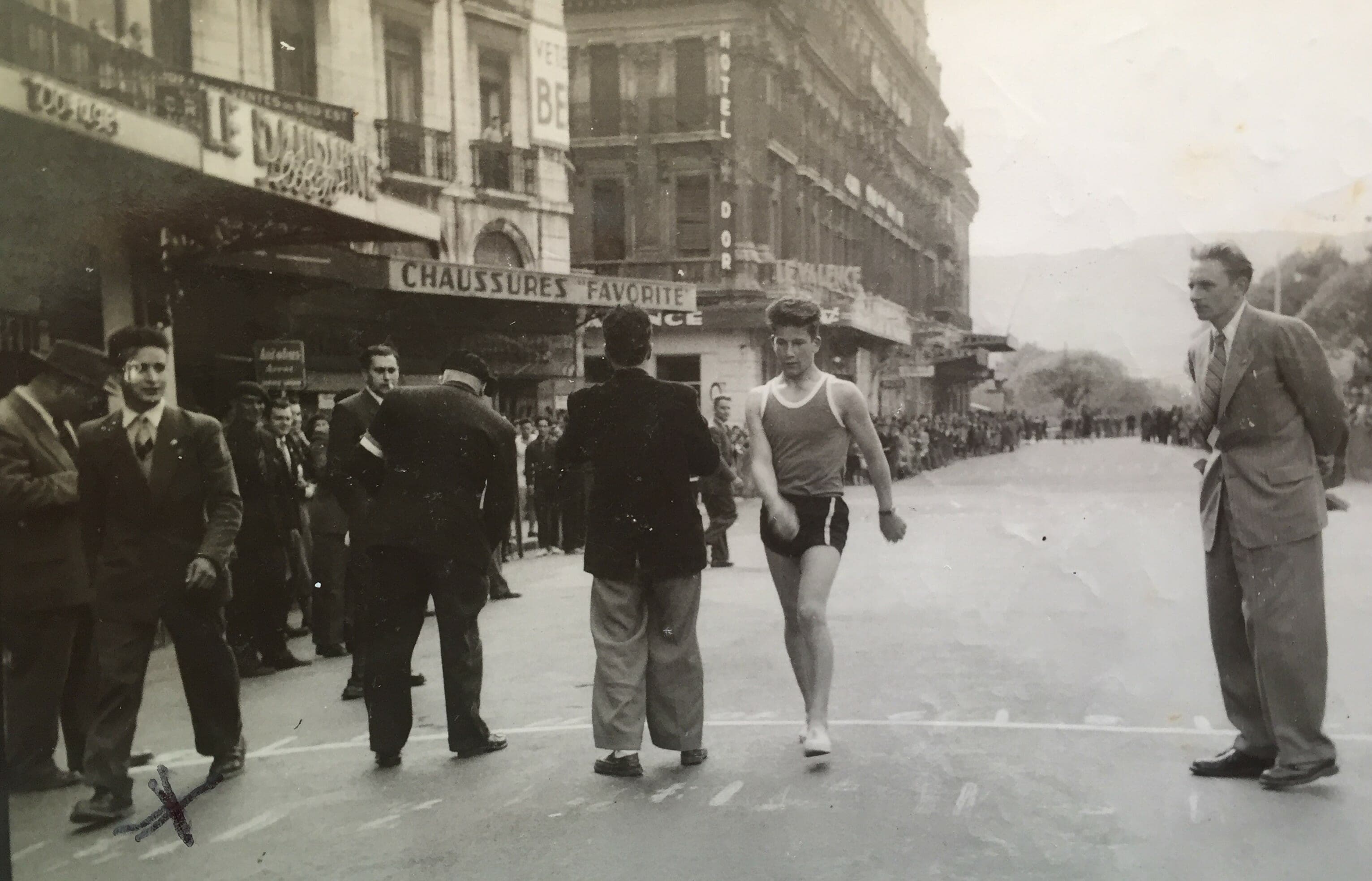 In those days, the longer races were on roads between major towns, such as Paris-Strasbourg and Paris-Tours. Such races wouldn’t be possible with all the traffic now! One of the longer races in which we supported Jean was the 100km Sion-Lausanne in Switzerland. We followed him on our motorbikes. Then Jean Strunc took part in the 50km walk in the 1952 Helsinki Olympics. He was an inspiring athlete. He had an impressive lung capacity of 9 liters! We became great friends, but then didn’t see each other while I was in the Army. However, we did work together again several years later – on the Mont Blanc tunnel where Jean was the Head Miner.