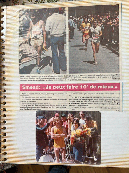 End note: For this article, Run the Alps also corresponded with Sierre-Zinal founder and longtime Race Director Jean-Claude Pont about Chuck Smead. Pont remembered Smead for his remarkable sportsmanship. Says Pont, “After his victory in 1977, Chuck said to me, ‘If you have the possibility to invite someone, my friend Pablo Vigil is better than I am.’ So that’s what we did—and in 1979, Pablo beat Chuck.”
