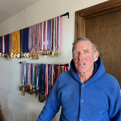 Chuck: I’m not competing anymore, but I still run six times a week. I don’t go very far anymore, but I go fast. I have a few paths near my home here that I like to run. I don’t run them “all out,” but I do “pick-ups.” It can be any length of time. I like to vary it. I have a nice variety of trails to choose from. I have a hilly route, a flat route, one that goes through a cow pasture – there are a bunch of options.