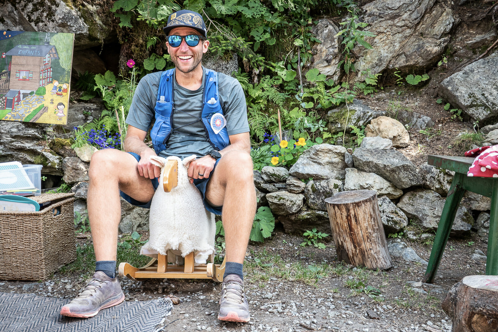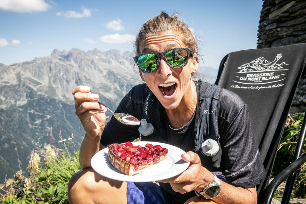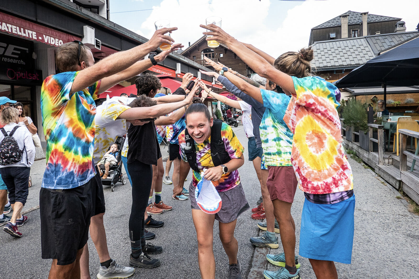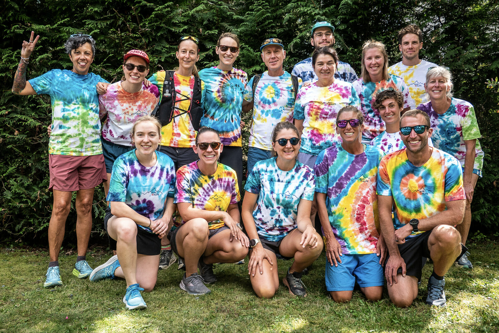 Pole practice on the way up to Refuge de Loriaz. Photo: Sam Hill.Catered dinner at The Hub Chamonix. Time to relax, sample beers, and tie-dye t-shirts. Photo: Kim Strom.Crew Brew: Kevin’s special edition beer surprise. Photo: Kim Strom.We spent a night at Refuge Albert Premier making the massive climb in the afternoon after running the vertical kilometer and parapenting back down in the morning. Photo: Kim Strom.How about that sunset? Photo: Kim Strom.Time to head back down from Albert Premier. Wake up legs. Photo: Kim Strom.Morning decent from the hut. Photo: Kim Strom.Of course we stopped plenty to enjoy the views! Photo: Kim Strom.Tie-dyed t-shirts! Some people have got tie-dye skills. Photo: Kim Strom.We raced through the streets of Chamonix on a crazy scavenger hunt. Photo: Kim Strom.On that scavenger hunt, which also added up to another 10km of running, we carried cheese, shoes, baguettes, and croissants. Most of those got eaten at the final stop, Big Mountain Bar. Photo: Kim Strom.Sorry, no pie left. We ate all the pie. Photo: Kim Strom.We made some friends, ate plenty of gummies and jelly beans, and did some running too. See here’s the running! Photo: Kim Strom.More running on the Grand Balcon Nord. Photo: Kim Strom.Still running. Photo: Kim Strom.We had no fun at all on the trails. Photo: Kim Strom.And no one was ready to be done. Photo: Kim Strom.
