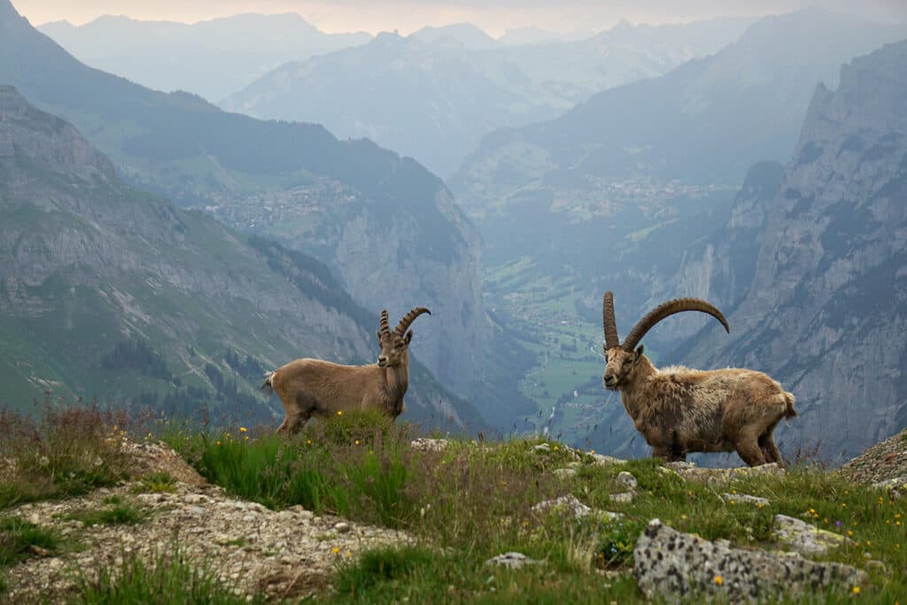 In Switzerland, there’s an ibex sanctuary in Pontresina, where more than 1,800 ibex live! A small number of ibex are also kept in the Alpine Wildlife Park Interlaken at the base of the Harderkulm, and you can frequently find herds grazing above on the extremely steep sides of the Hardergrat.