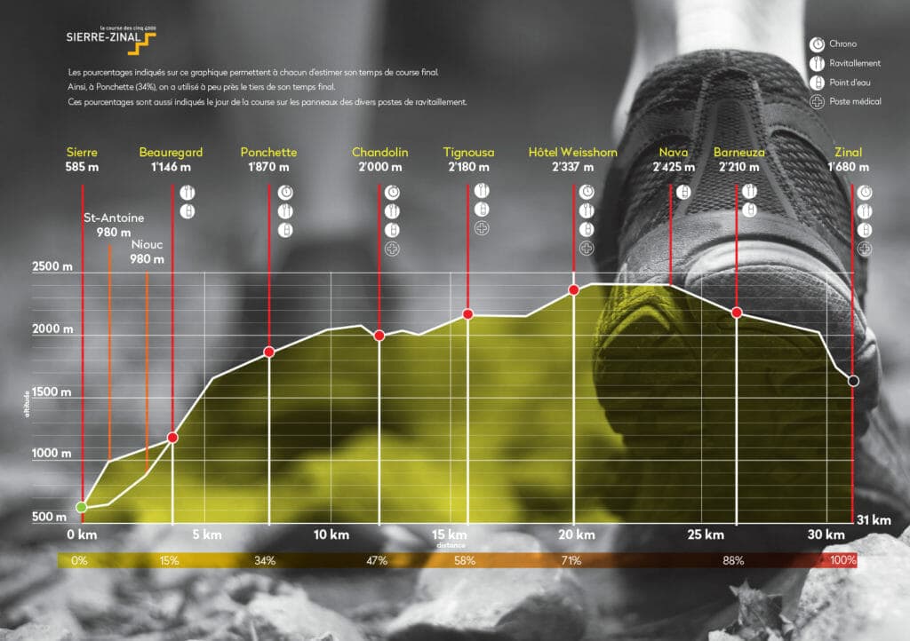 Over our brews, we chatted about our recent races and European adventures while our bus snaked its way up a rapidly climbing road, mirroring what would be the first ascent of the race. Sierre, where the race begins, sits on the broad Rhône valley floor, while the mountain hamlet of Zinal, where the race finishes, sits nearly 1,000 meters higher, located at the head of a narrow side valley. The course connects the two towns over a 31-kilometer route. However, it takes you relatively high into the mountains trails above the road we were traveling, such that it features 2200 meters (or about 7200 feet) of climbing and 1100 meters (or 3600 feet) of descending.