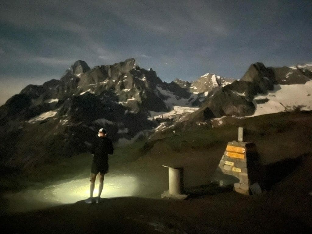 Mike: I was pretty nervous! A lot of that was because I had never climbed the Italian side of Mont Blanc, and any time you push your boundaries it’s going to make you a little nervous. I also have never run for more than 24 hours in one push, and I know I am not great at night. Although I was nervous, I was also excited. The “Pope” route was totally unknown for both me and Dave Searle, who was guiding me during that part.