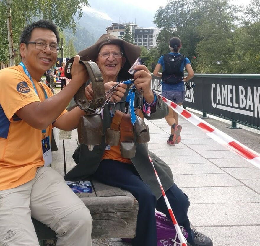 Chamonix, France’s Robert Etellin is a fixture at the valley’s trail races, each and every summer. With his local outfit and collection of cowbells, it’s hard to miss this ebullient cheerleader. Robert has a story of his own, too– from service in the French army, to a collection of national-level results in race walking, to years spent helping to build the Mont Blanc tunnel.