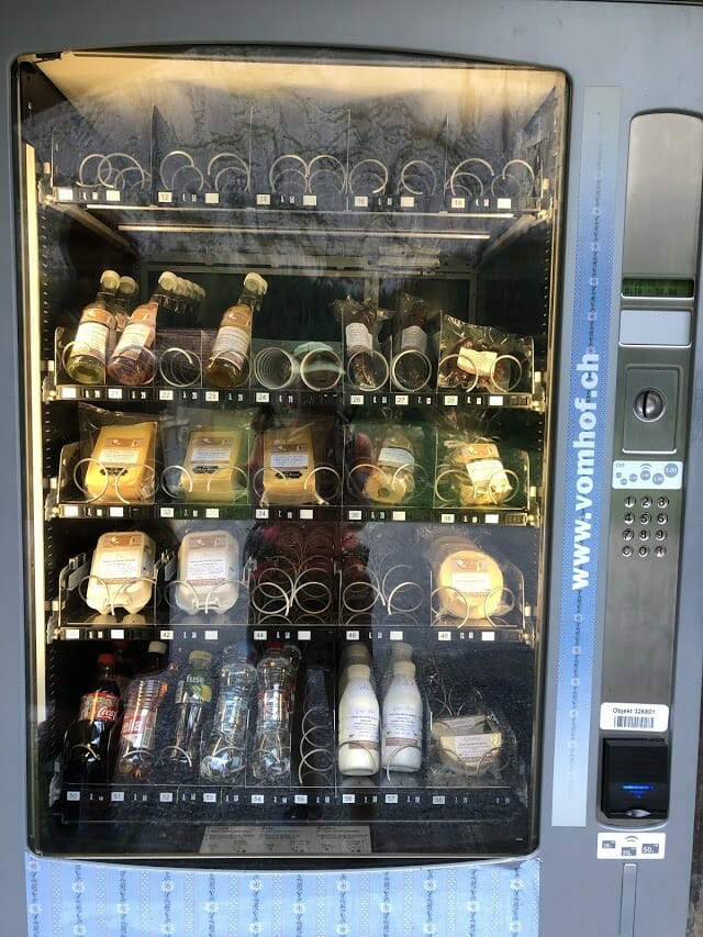 Just your standard Swiss vending machine: Sodas, cheese, sausage, eggs (Photo: Wrenae Shabel).