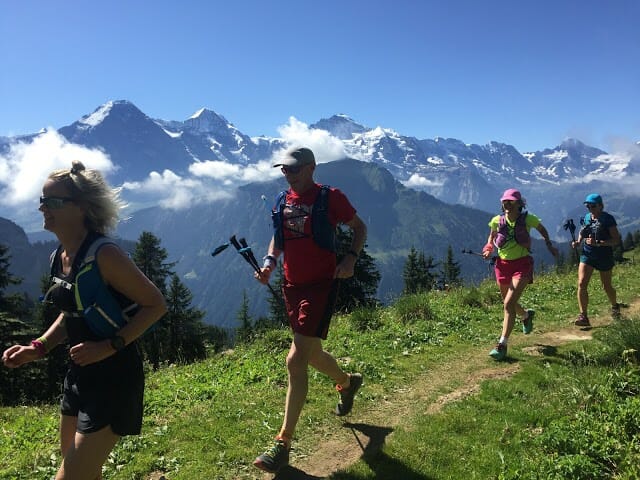 Running along the Schynige Platte, with our first views of the Eiger, Monch and Jungfrau in the background (Photo: Emily Geldard).