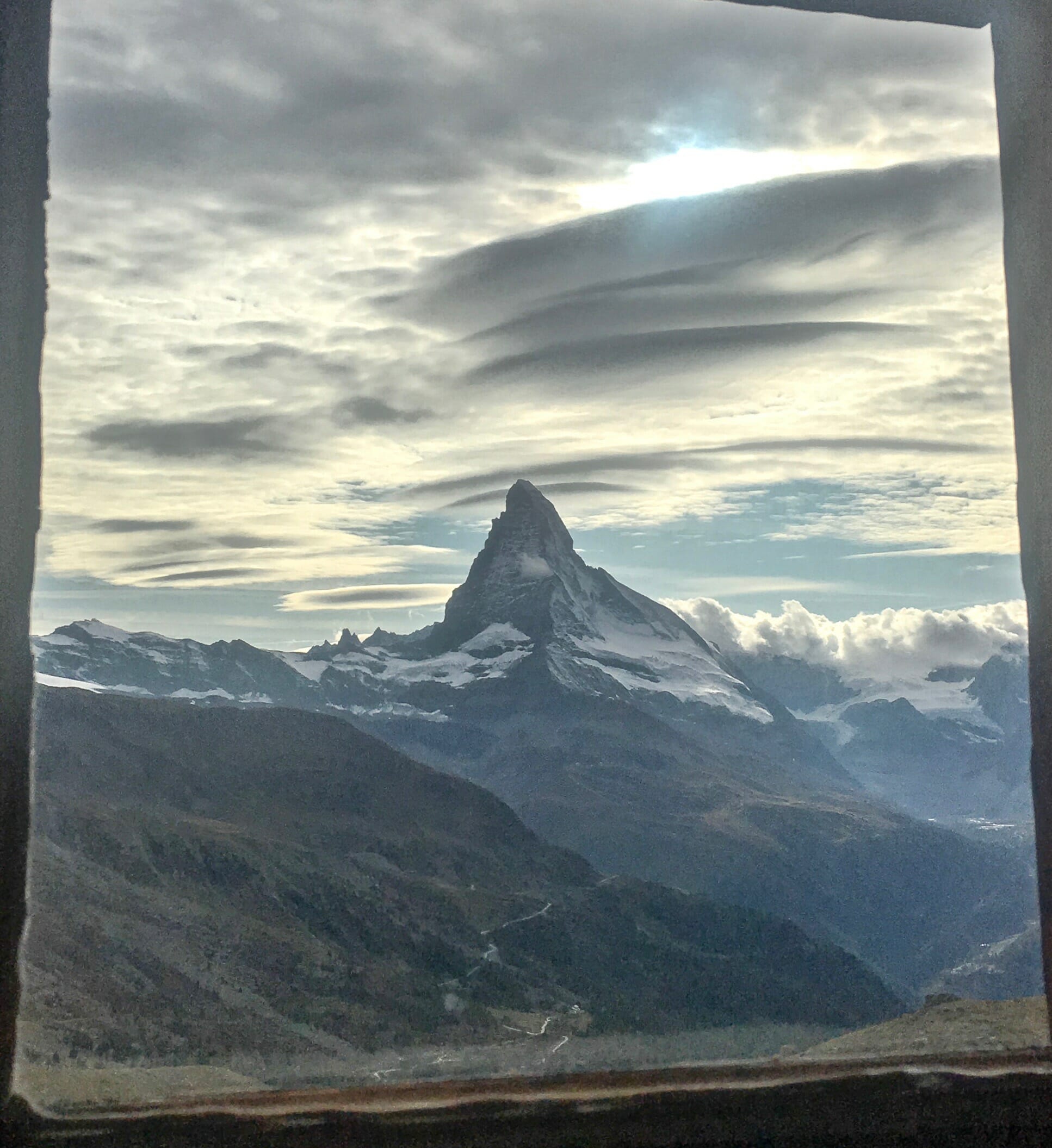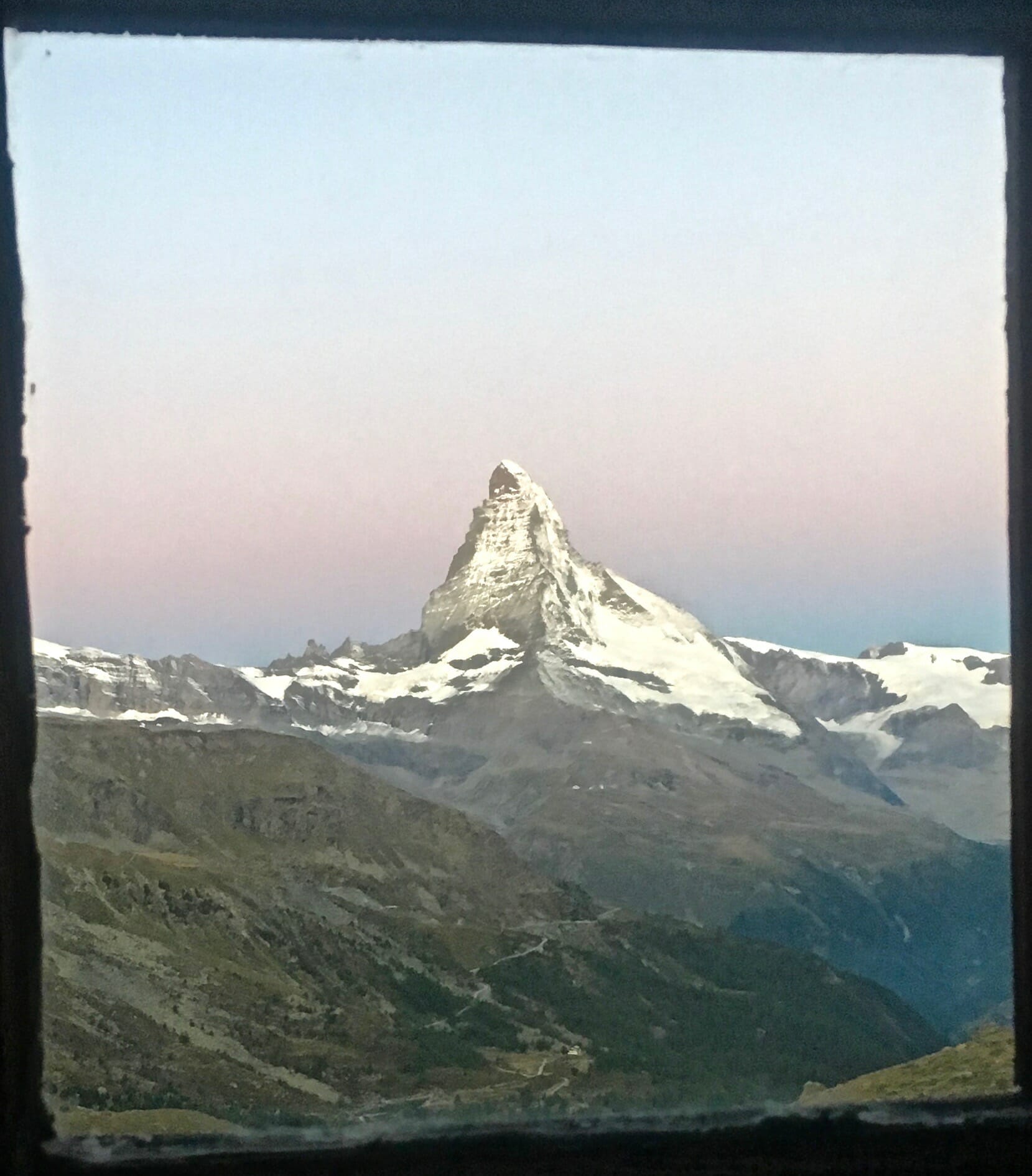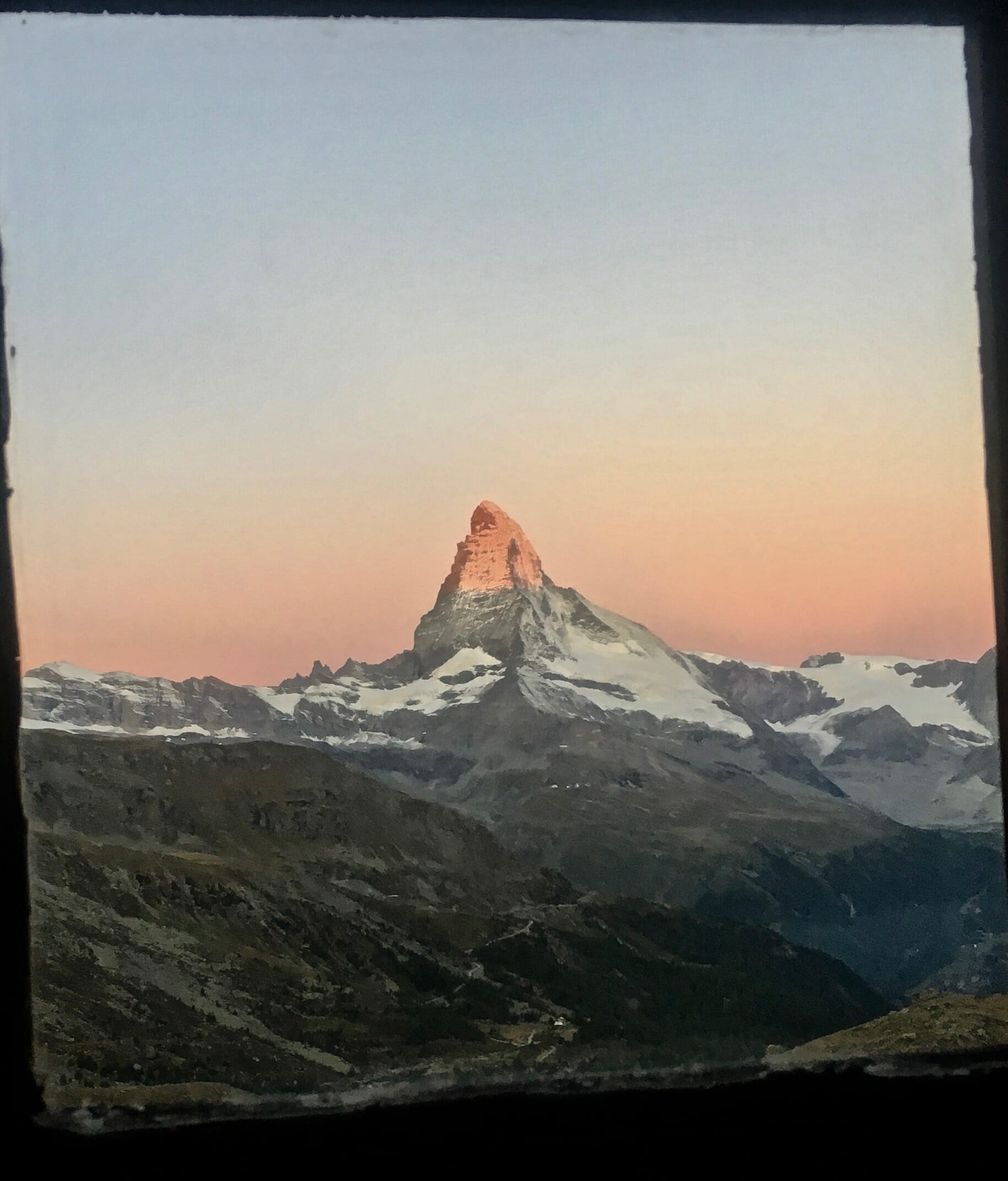 - The changing face of the Matterhorn, seen from our hotel window at Fluealp (Photo: Mark Brightwell).