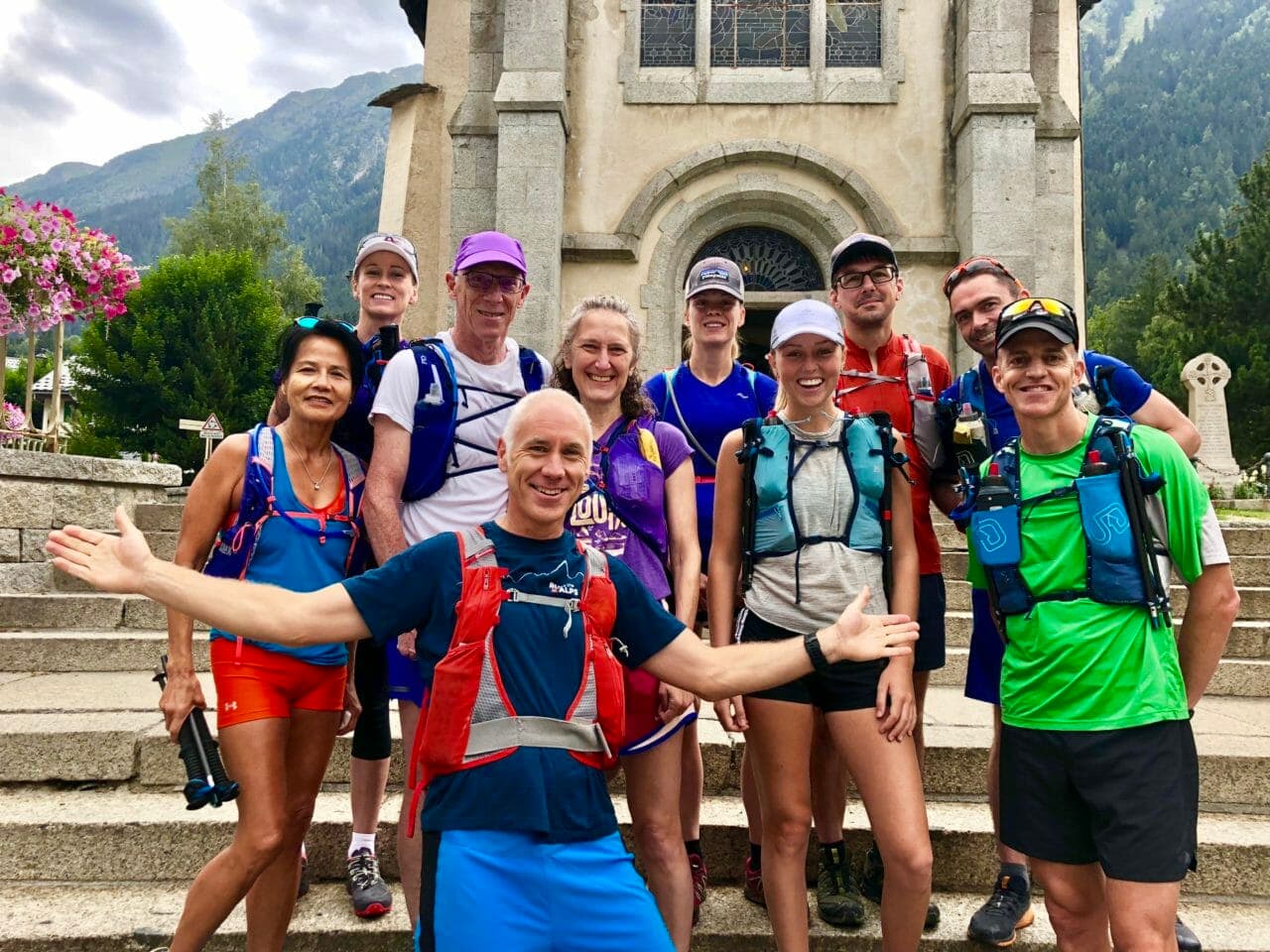 Standing on the steps of the church of St Michel in Chamonix, we were set for our Tour du Mont Blanc around the Mont Blanc ‘massif’, or range. Following a shakedown run the day before on the stunning Balcon du Sud, minds, bodies and souls – and running gear, too – were ready for the journey. Despite slight drizzle and overcast skies for our first hour, the sunny and warm forecast came through mid-day and continued pretty much for the whole trip. It was great weather for enjoying stunning views. On the downside, we also cleared village pharmacies of electrolyte tabs!