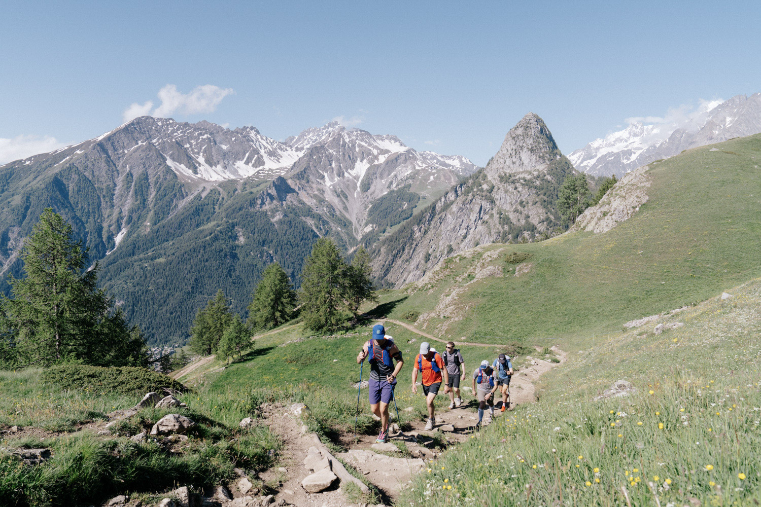 Today we’ll take a taxi through the Mont Blanc tunnel to Italy, and start our run in Val Veny – a stunning balcony trail back to Courmayeur. Dinner is at the Hotel Courmayeur Mont Blanc Cable Car restaurant, then an evening taxi will take us back to our hotel in Chamonix.