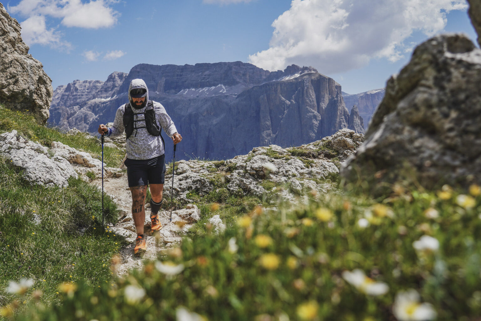 Today’s highlight is the “Gunther Messner way,” a flowing, narrow trail that’s occasionally exposed and completely absorbing! It’s a fitting finale, set in a wild locale, with jagged peaks and steep scree slopes.
