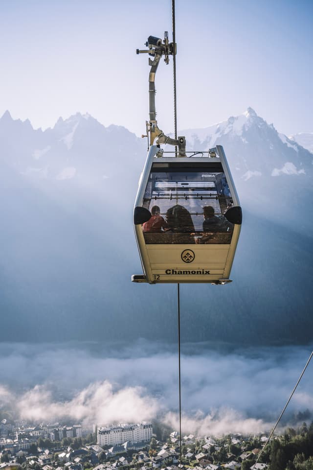 Riding the lift up from Chamonix. (Photo: Sam Hill)