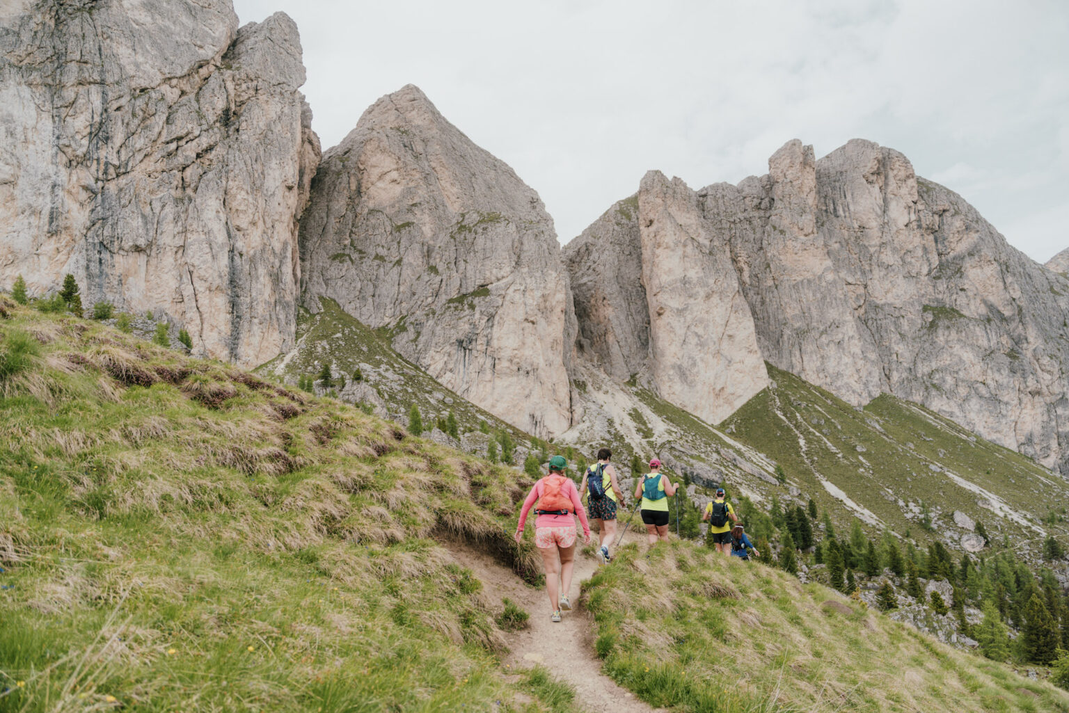 On this level 1 Dolomites tour, we won’t rush, and we’ll make strategic use of mountain funiculars and gondolas to reduce the big climbs and descents. An important feature of our level 1 tours is that they have a higher ratio of guides to guests. The pace will be slow and steady with plenty of time to enjoy stops along the way. If you find your energy flagging, that’s okay! It’s possible to take a day off at various points (though not every day), if you prefer to rest. Like all of our trips, this is a no-judgment zone. We’re here to have fun!