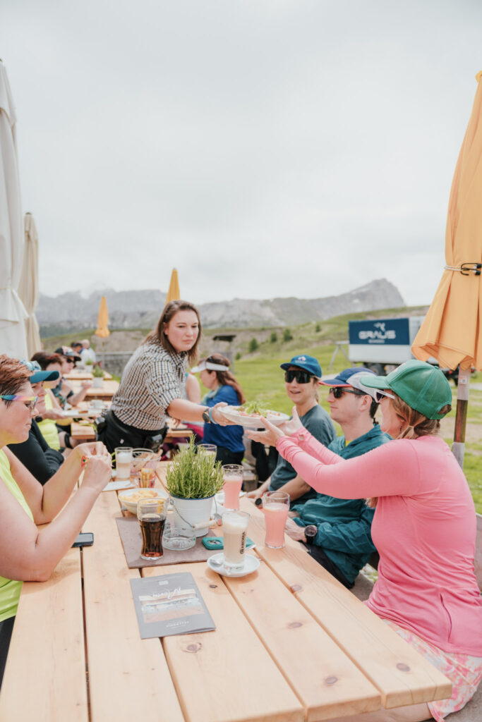A typical day starts with a buffet breakfast at our hotel, usually including freshly baked bread and pastries, local meats and cheeses, cereal, fruit, eggs, coffee and juice. Soon we’ll be out on the trail, running through pastures and under the Dolomites’ iconic rocky towers. Later, we’ll enjoy dinner together at our hotel restaurants, featuring delicious local Austrian and Italian specialties.